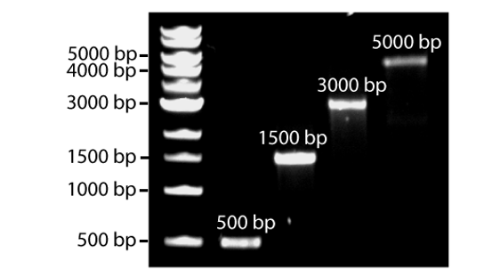 來(lái)源于 3 ng DNA質(zhì)粒的不同大小擴(kuò)增產(chǎn)物。
